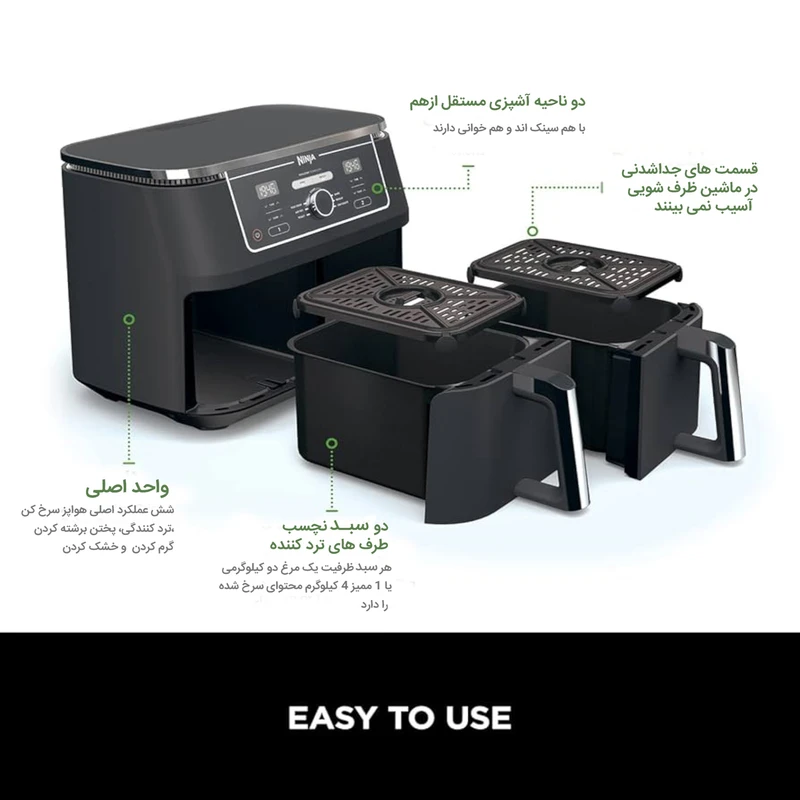 سرخ کن بدون روغن مدل – Ninja Foodi MAX Dual Zone Large Air Fryer AF400