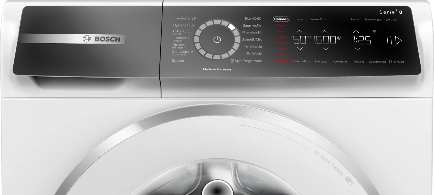 این ماشین لباسشویی یکی از جدیدترین دستگاه های سری 8 ساخت آلمان است که زبان پنل آن آلمانی می باشد و دارای آپشن های بسیار کاربردی و خاصی است که می تواند شستشویی ایده آل را ارائه دهد. این قابلیت ها شامل موارد زیر می باشد: