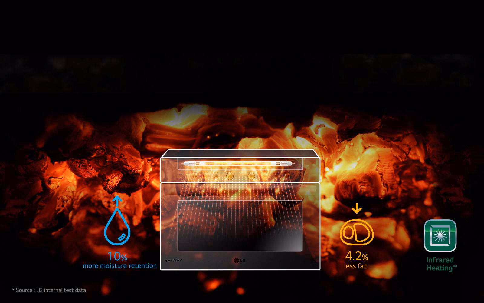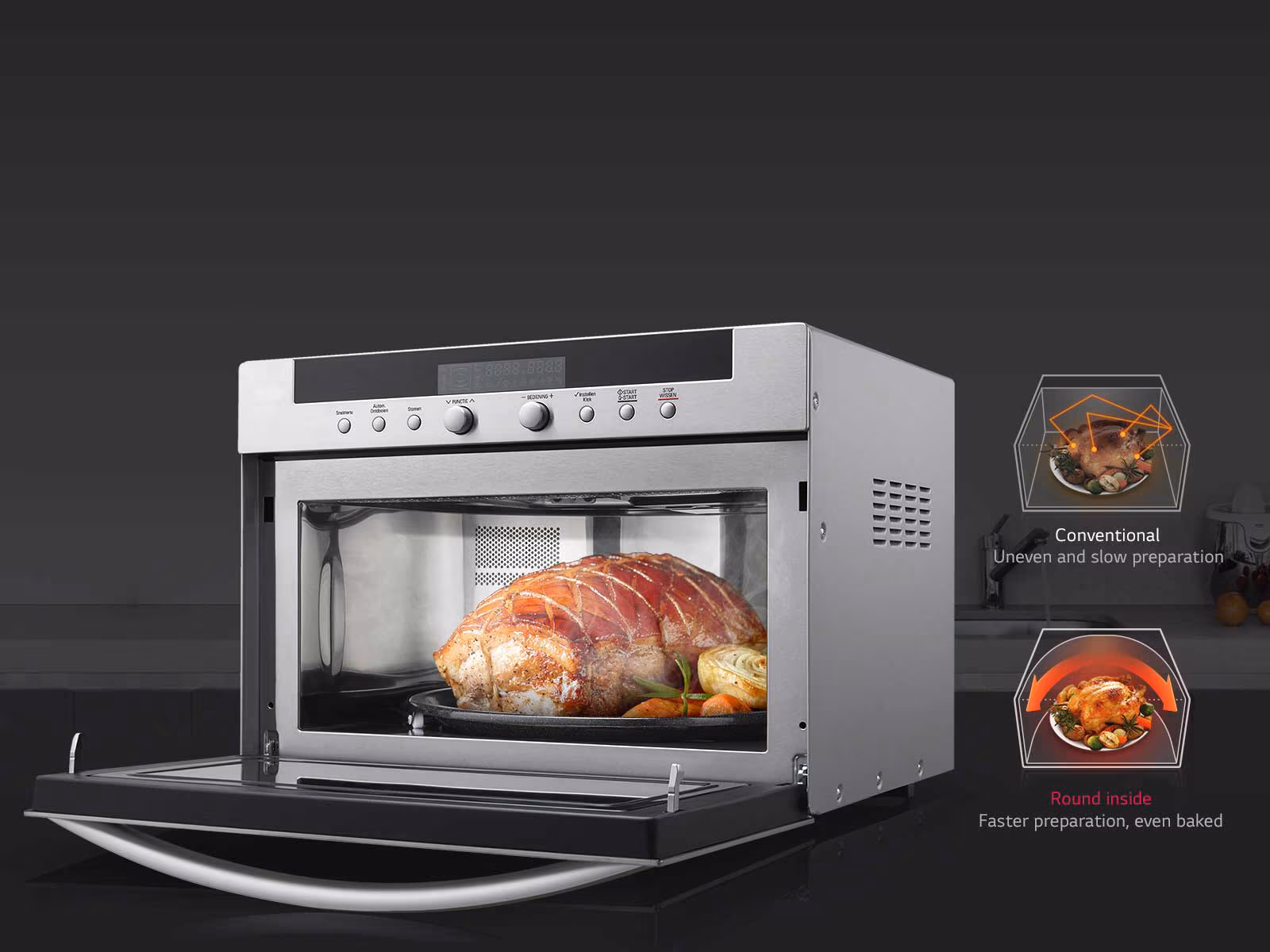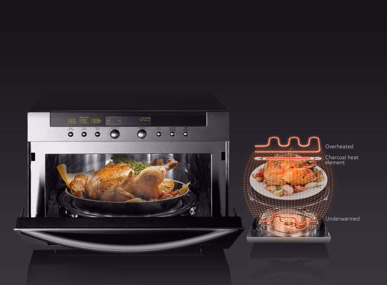 مایکرو 3884 دارای پخت هیتر ذغالی، این عملکرد غذا را سریع تر و عمیق تر گرم و کبابی کرده همچنین باعث 30% صرفه جویی در زمان و 20% در انرژی می شود. این دستگاه مجهز به محفظه مدور و توزیع پخت یکنواخت است، در نتیجه غذا خام یا نیمه خام نمی شود.