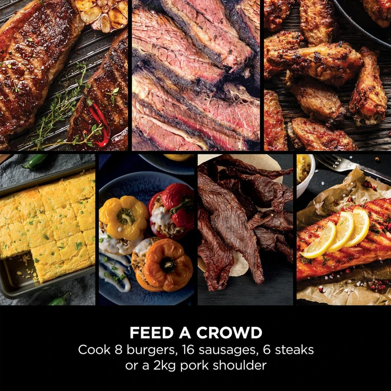 این گریل برای خانواده های پرجمعیت و مهمانی دادن ایده آل بوده پس با خیال راحت آن را خریده و دورهمی هایتان را جذاب تر و سفره هایتان را رنگی کنید. 6 استیک یا 30 هات داگ را کبابی کنید، حدود 1.5 کیلو بال را در ظرف مخصوص سرخ کنید، یا یک مرغ کامل 4 کیلویی را در باربیکیو کبابی و دود کنید.