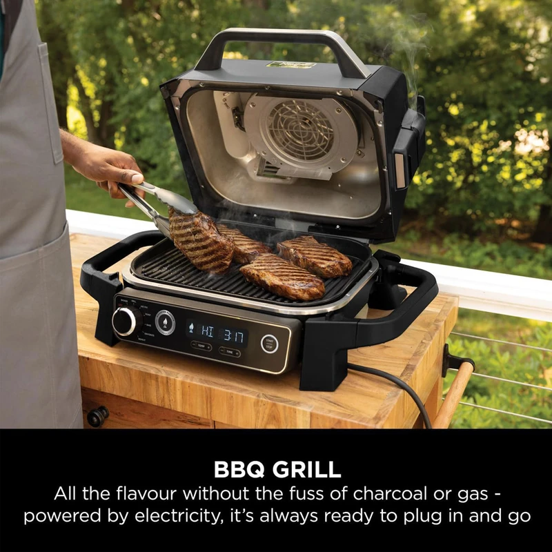 گریل باربیکیو برقی نینجا مدل OG701 با برق کار می کند. از عملکردهای کم نظیر آن می توان به 7 برنامه گریل کردن، دودی کردن، سرخ کردن، کباب کردن، پختن، گرم کردن و آبگیری اشاره کرد. این دستگاه به امکانات پیشرفته ای از جمله تکنولوژی Woodfire مجهز شده و شما باید در مخزن مخصوص، تکه های چوب را به منظور ایجاد آتش و گریل کردن مواد غذایی قرار دهید. با این تکنولوژی جدید طعم دودی و کبابی خوشمزه ای ایجاد می شود که از خوردن غذاها لذت خواهید برد.